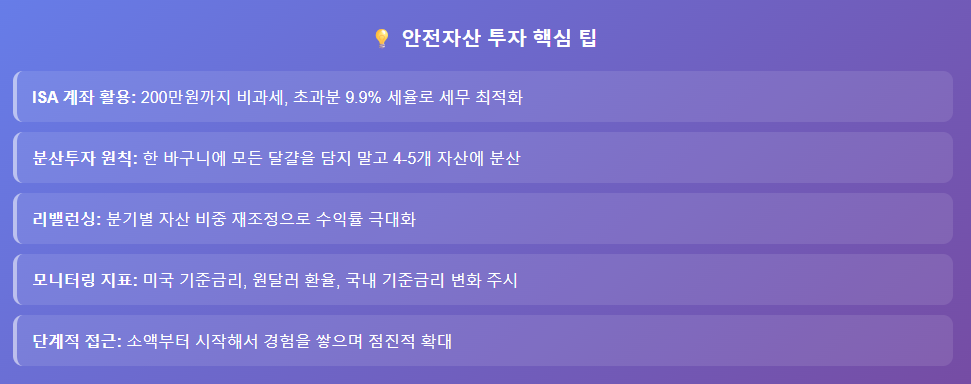 - 단계적 확대: 매월 일정 금액을 다양한 안전자산에 분산 투자