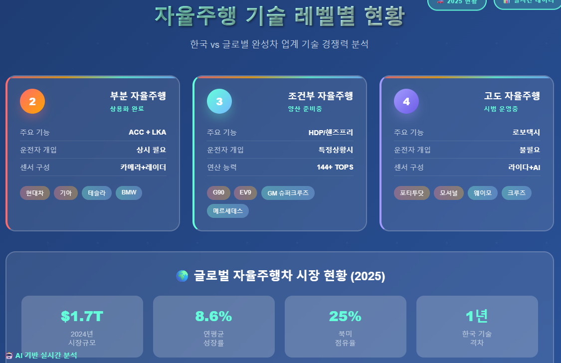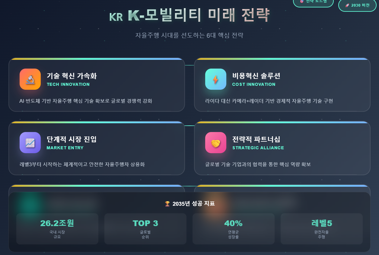 자율주행 기술의 핵심은 '인간 운전하는 것보다 더 안전한 운전'이라는 점에서, 한국 업계가 보유한 높은 품질과 안전성에 대한 신뢰는 중요한 경쟁 우위가 될 것입니다.