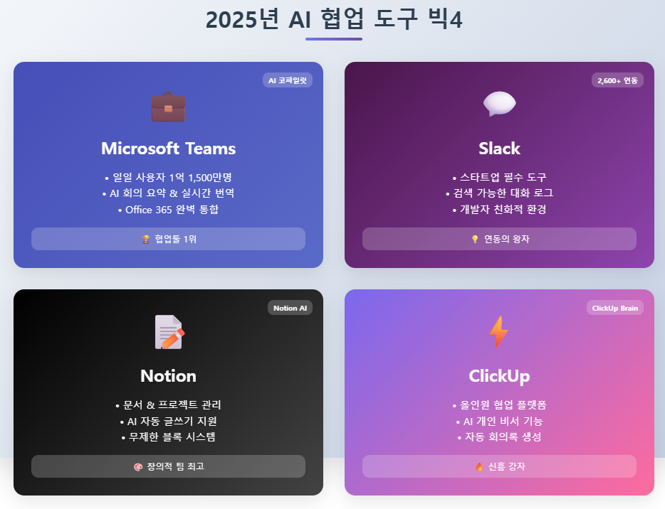 앞으로 협업 도구는 더욱 지능적이고 개인화된 방향으로 발전할 것이다. 이 변화의 물결에 뒤처지지 않으려면 지금부터라도 AI 기반 협업 환경에 익숙해지고, 팀에 최적화된 도구 조합을 찾아 실험해보는 것이 좋겠다.